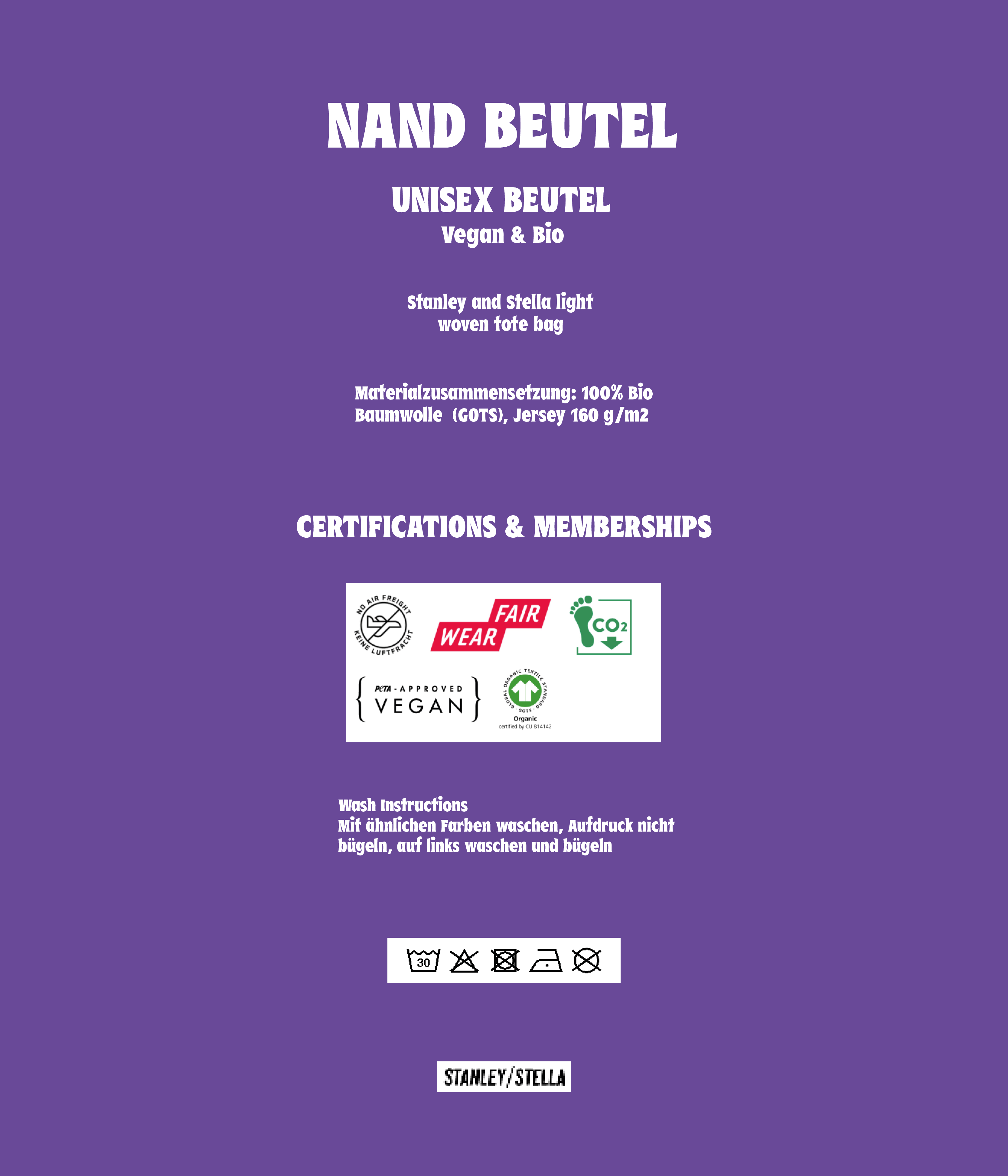 - 100 % Bio-Baumwolle, 160 g/qm Herstellerangaben: OBERSTOFF: PLAIN WEAVE, 100% GEKÄMMTE RINGGESPONNENE BIO-BAUMWOLLE, VORGEWASCHEN, 160 GSM