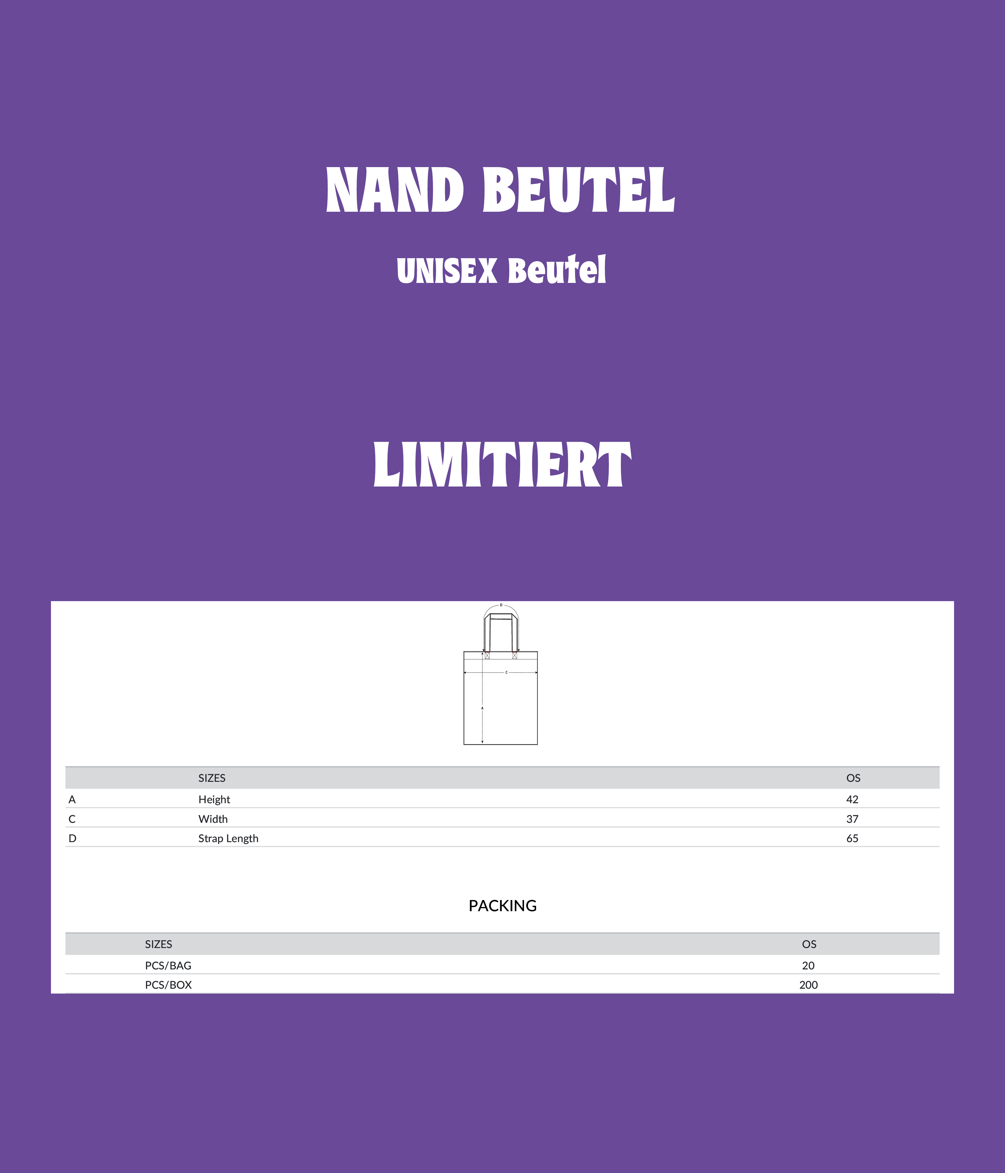 - Die oberen Kanten sind für ein robustes und hochwertiges Finish gefaltet. Lange Henkel mit verstärktem Kreuzstich.