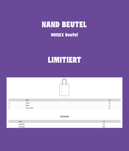 | Tasche/Beutel (nand-Logo) - Die perfekte Tragetasche für Rotwein, Kippen und ein klein wenig Schnaps…! ☺ | 12,00 € | Ausverkauft |