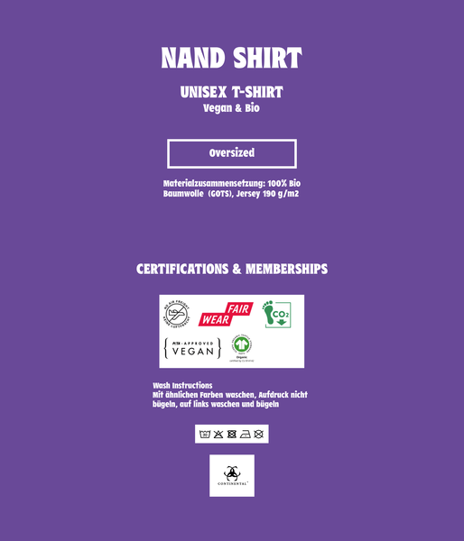 Wie immer achten wir auf einen hochwertigen Rohling, auch dieses Shirt ist aus einem schweren 190 Gramm-Textil gewebt, liegt angenehm auf der Haut, so dass ihr ein echtes Wohlfühl-Shirt von nand bekommt, das Euch immer gut in Szene setzen wird: Beim Knutschen auf der Couch oder beim Laufen draußen an der frischen Luft oder beim Pumpen in der Muckibude… und frisch gewaschen natürlich auch abends beim nand-Konzert!
